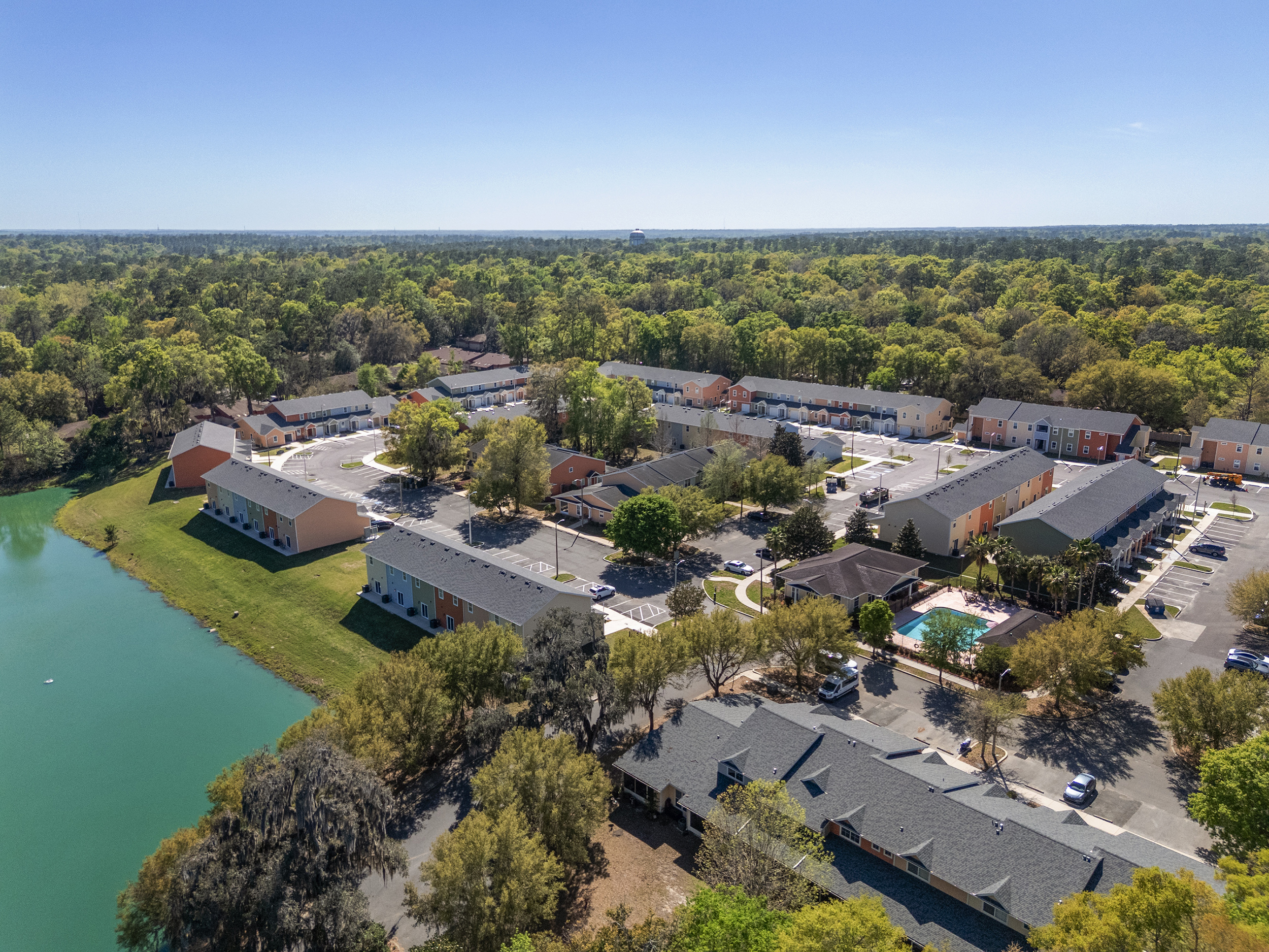 Featuring a welcoming lake-view entrance, with a pool, clubhouse, and gym all conveniently on-site in this beautiful 27+ acre community in the heart of NW Gainesville! All new units have luxurious finishes and come with a 1-year warranty.